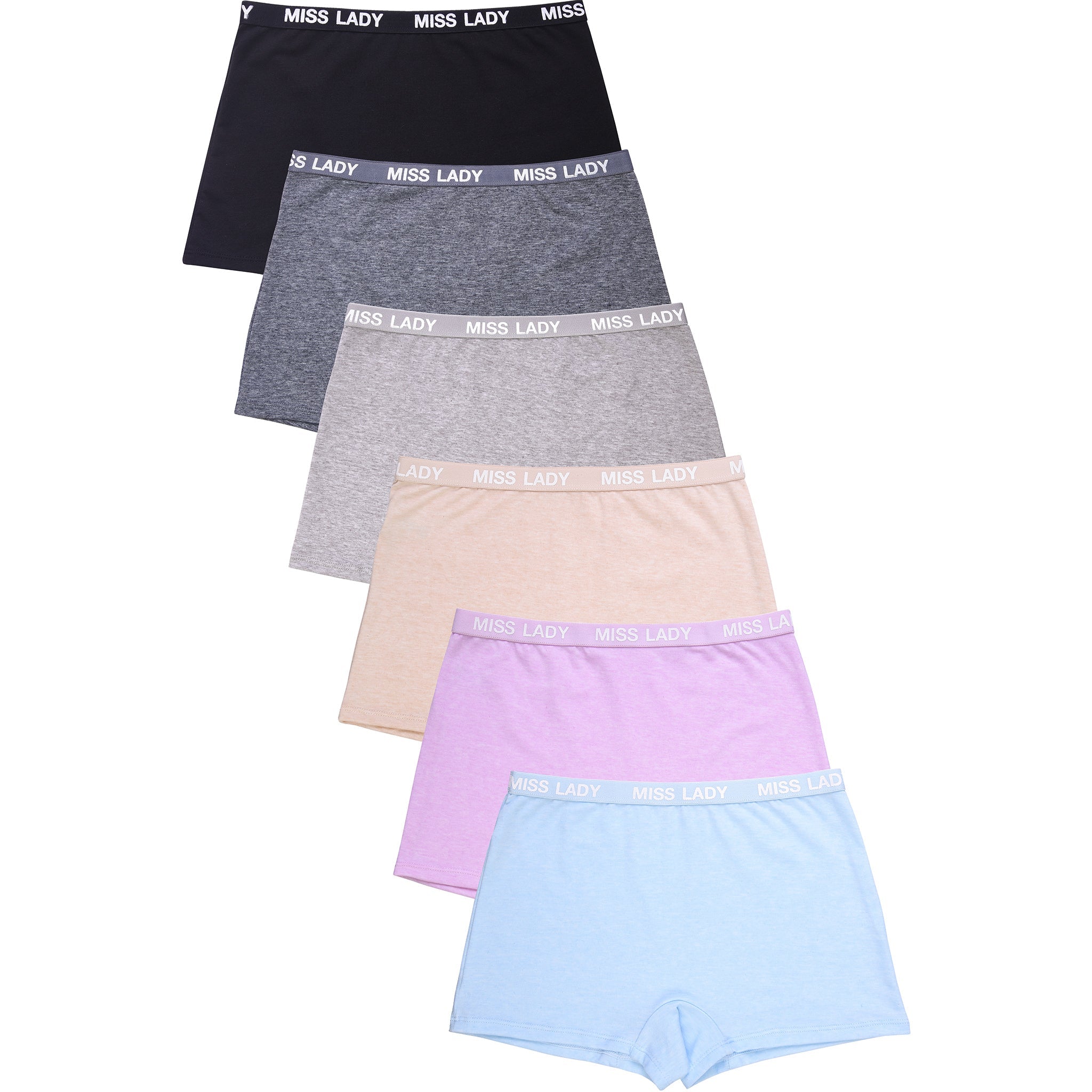 PACK OF 6 SOFRA OR MAMIA WOMEN'S COTTON BLEND LOGO BAND SOLID BOYSHORT PANTY (LP6138CB2)