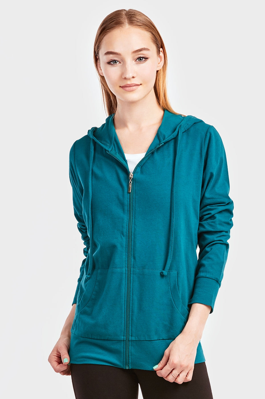 Women's Essentials Sofra Lightweight Full Zip Cotton Hoodie Sweater Peacock (HDC7000_PCK)