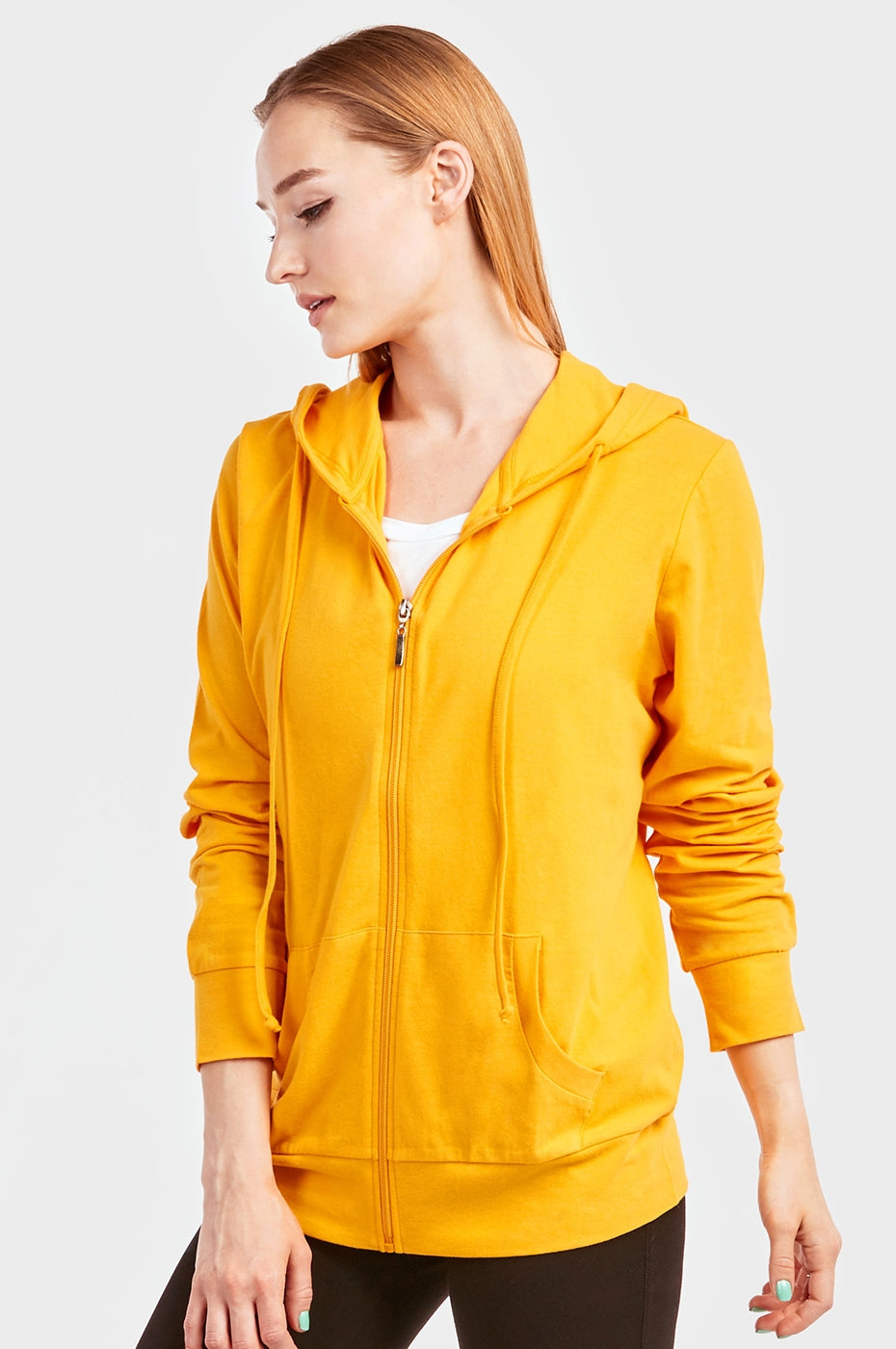 Women's Essentials Sofra Lightweight Full Zip Cotton Hoodie Sweater Mustard (HDC7000_MUS)